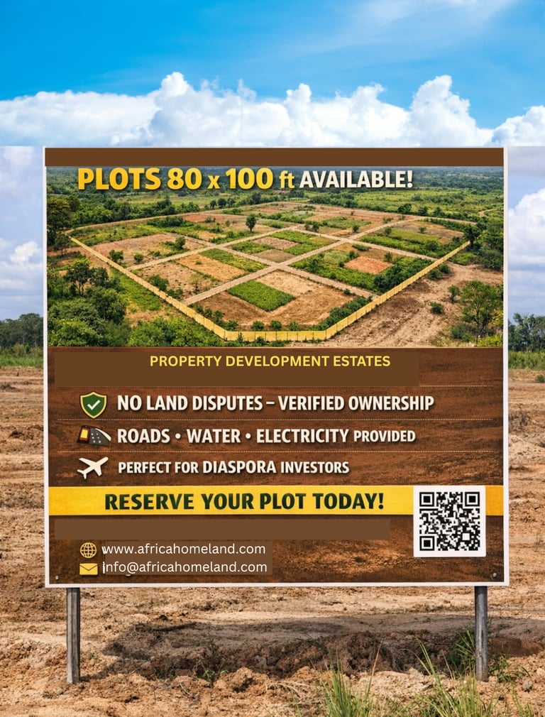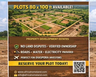 Created with long-term living, return, and community in mind, the development brings together well-designed homes on generous 80 x 100 ft plots, set within a clearly structured and properly serviced environment. The focus is on creating a place that feels secure, practical, and rooted — offering a clear and dependable pathway into property ownership and everyday living in Ghana, particularly for those in the diaspora seeking to build, return, or invest with confidence.